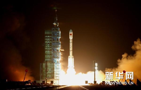 9月29日,中國在酒泉衛(wèi)星發(fā)射中心用長征二號F運(yùn)載火箭將天宮一號目標(biāo)飛行器發(fā)射升空。 新華社記者 王建民 攝