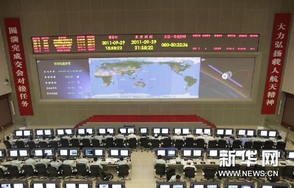 天宮一號目標(biāo)飛行器發(fā)射成功 9月29日,載人航天工程總指揮常萬全宣布:天宮一號目標(biāo)飛行器發(fā)射成功。圖為天宮一號目標(biāo)飛行器發(fā)射成功后,北京航天飛行控制中心指揮大廳的工作人員堅(jiān)守在工作崗位。新華社發(fā)(王申 攝)