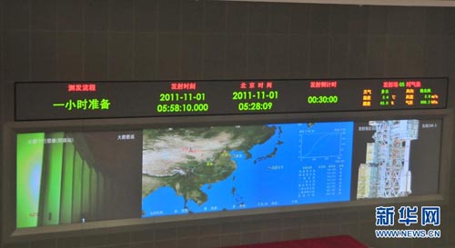 圖為神舟八號(hào)發(fā)射倒計(jì)時(shí)30分鐘。新華網(wǎng) 郭毅攝