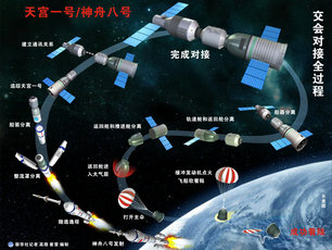 天宮一號(hào)、神舟八號(hào)交會(huì)對(duì)接過程模擬示意]]>