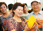 中共中央臺辦主任陳云林15日下午在兩岸經貿論壇閉幕式上,受權宣布為擴大臺灣農產品在大陸銷售,自今年5月1日起,對臺灣水果檢驗檢疫準入品種由18種擴大到22種,新增柳橙、檸檬、火龍果和哈密瓜4種水果準入。 |