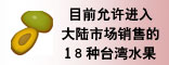臺灣省農會理事長古源俊介紹說,大陸已同意臺灣的十二種水果,四月間可以免稅、專案綠色通關方式進入北京、上海市場銷售。 |