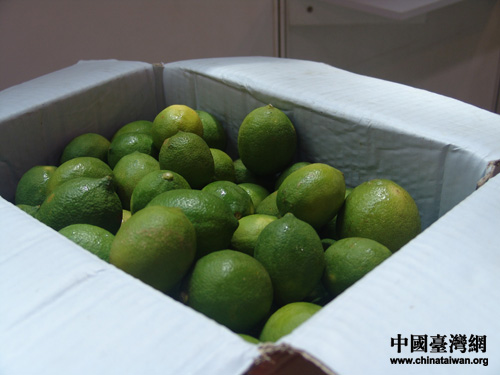 “青檸亮晶晶”,從臺灣本土運輸過來的青檸剛剛從冷藏車中取出,新鮮的青檸上還掛著亮晶晶的水珠。(攝影:魏萌)