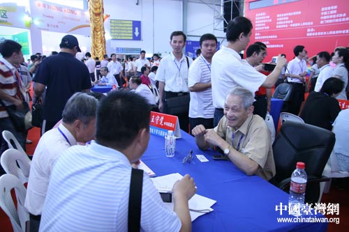 第七屆中國·海峽項目成果交易會6月18日上午在福州市開幕,圖為開幕后院士(右側老者)與廠商交談。(中國臺灣網 高大林 攝)