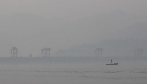 新華網(wǎng)湖北頻道4月13日電 4月13日,受降雨天氣影響,長(zhǎng)江三峽湖北宜昌至重慶萬(wàn)州段江面出現(xiàn)大霧,對(duì)船舶航運(yùn)影響較大。至當(dāng)天10時(shí)左右,長(zhǎng)江宜昌段江面才暫時(shí)解除停航。史偉 攝