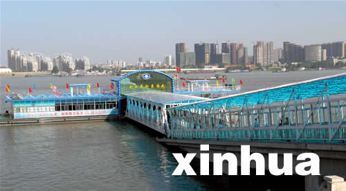 5月3日拍攝的武漢關新輪渡碼頭。“五一”期間,武漢關新輪渡碼頭投入使用,過江客運十分繁忙。武漢關輪渡碼頭擴建工程歷時約半年,大大增強了碼頭的抗浪能力,平緩的坡度更便于乘客上下。新華社發