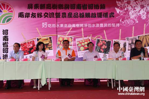 郭庚茂一行出席屏東縣高樹鄉(xiāng)與河南省河洛鎮(zhèn)兩岸友好交流暨農(nóng)產(chǎn)品采購啟運儀式。圖片來源:河南省臺辦