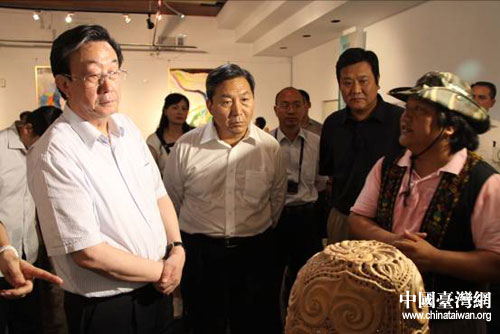郭庚茂一行參觀少數(shù)民族文化園區(qū)展覽室。圖片來源:河南省臺辦