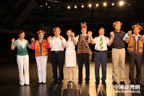 郭庚茂省長一行還參觀了臺灣少數(shù)民族文化園區(qū),欣賞了少數(shù)民族舞蹈,與當?shù)鼐用褚黄鸪拔覀兌际且患胰恕边@首歌跳起了民族舞蹈,進一步拉近了彼此間的感情距離。與此同時,河南省藝文團體為當?shù)厣贁?shù)民族獻上了一場精彩絕倫文藝演出,進一步加強了兩地文化藝術上的交流與合作,促進了兩地文化的共融。