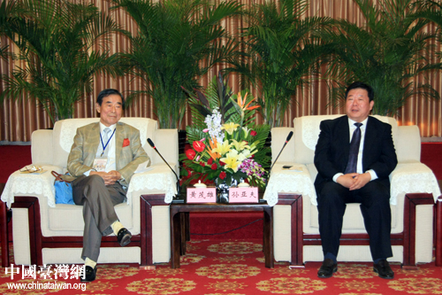 10月18日下午,國臺辦副主任孫亞夫在漯河親切會見了前來參加2011豫臺經貿洽談會暨臺商中原行的香港臺灣商會會長黃茂雄港等港澳臺商。(中國臺灣網 王偉 攝)