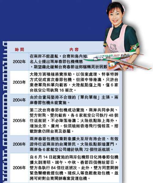| 兩岸包機進程表(香港《大公報》制圖) |