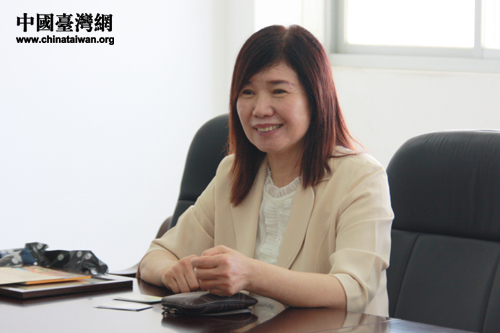 泉州宏漢制衣有限公司董事劉鳳嬌介紹公司相關情況。(中國臺灣網 胡珊珊 攝)