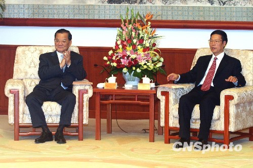 7月29日,中共中央政治局委員、中共天津市委書記張高麗在天津迎賓館會(huì)見來津出席第二屆天津——臺(tái)灣投資合作洽談會(huì)的中國國民黨榮譽(yù)主席連戰(zhàn)。 中新社發(fā) 郭曉帆 攝