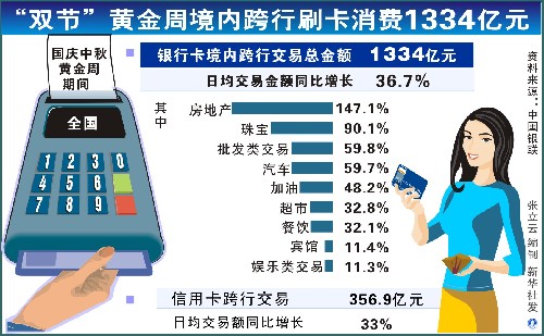 “雙節”黃金周境內跨行刷卡消費1334億元
