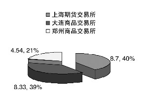 綜合三大期貨交易所數據,2009年國內期市成交額達到130.51萬億元人民幣,同比增長81.5%。其中,上期所成交73.76萬億元,大商所成交37.64萬億元,鄭商所成交19.11萬億元,分別占56.52%、28.84%和14.64%;上期所銅和天然橡膠,大商所的豆油等三大品種位居交易額前三。業內人士表示,若市場期待的股指期貨、商品期權等新品種如期而至,今年國內期市交易規模仍將呈爆發式增長。