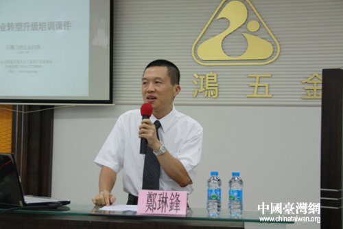 來自臺灣的知名講師鄭琳鋒對飛鴻五金飾品有限公司中層管理干部進行培訓。(中國臺灣網 胡珊珊 攝)