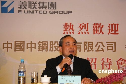 五月十一日下午,正在臺灣參訪的中國中鋼股份有限公司董事長黃天文,在高雄縣義聯(lián)集團總部召開記者會,宣布將以在香港的全資子公司的名義在臺北開設辦事處。辦事處地點已選定在臺北一0一大樓,目前正在裝修。 中新社發(fā) 耿軍 攝