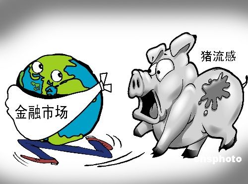 漫畫:豬流感疫情驚動世界 金融市場拉響警報。 中新社發 宋學海 作