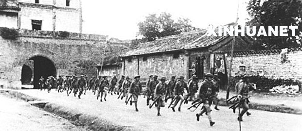 中國軍隊奔赴盧溝橋抵抗日軍