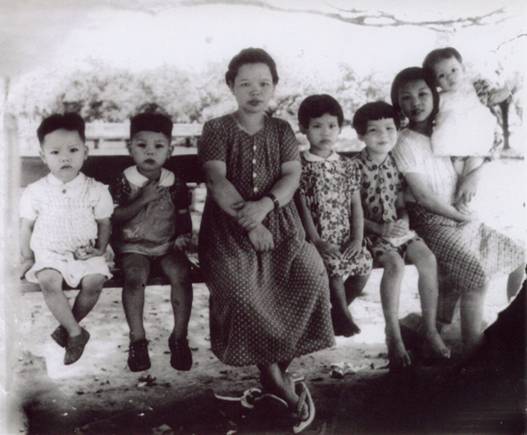 左起:作者謝雨辰、三哥、母親、二姐、大姐、保姆、大妹(攝于1945年臺(tái)灣臺(tái)中公園)