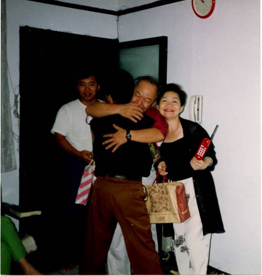 午夜,從墓地回到臺(tái)北永和秀朗路的大姐家時(shí),很意外又驚訝的發(fā)現(xiàn)大哥帶著侄子(忠翰)站在巷口,慈母的逝去及十年的兩地分離,我們不由萬(wàn)分感慨,悲從中來(lái),大哥緊緊擁抱著我,兄弟倆放聲大哭一場(chǎng)。原來(lái)大哥一家人為慈母送完殯后就回美國(guó)加州去了,后來(lái)聽說(shuō)我和金鳳被臺(tái)灣當(dāng)局最后放行后,他竟然再度跨越重洋返回臺(tái)灣,為了就是想見見遠(yuǎn)在北京的四弟和弟媳金鳳。