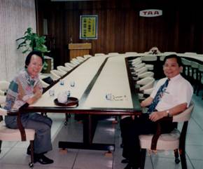 作者謝雨辰向TAA游象卿董事長(zhǎng)介紹大陸喜人 變化(攝于公司大會(huì)議室)