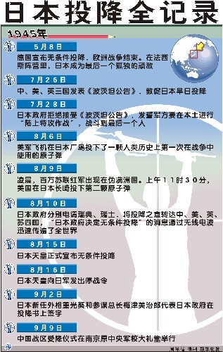8月10日6時,日本政府分別電請瑞典、瑞士,將投降之意轉達中、美、英、蘇四國,“日本政府決定無條件投降”的消息通過無線電波迅速傳遍了全世界。