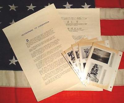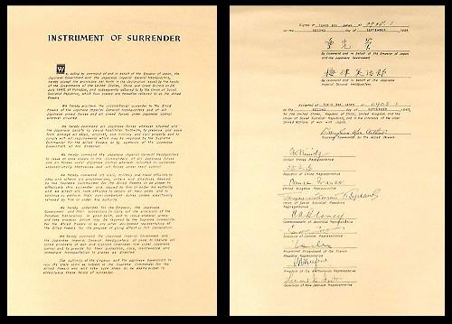 日本投降代表團由外相重光葵和日軍大將梅津美治郎率領到達密蘇里號甲板上進行簽署降書儀式