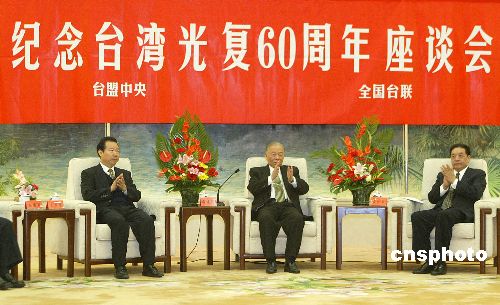 臺盟中央、全國臺聯(lián)23日在人民大會堂臺灣廳舉行座談會,隆重紀念臺灣光復六十周年。