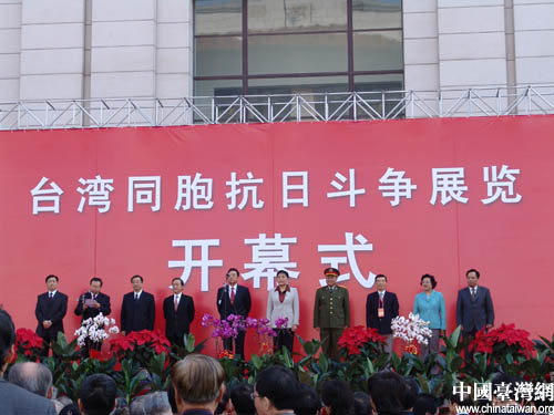 中共中央臺灣工作辦公室主任陳云林在開幕式上發(fā)表講話。他指出,在日本殖民者侵占臺灣的半個世紀(jì)里,英勇的臺灣同胞從未屈服于日本侵略者的殘暴統(tǒng)治。他們用生命和鮮血為抗戰(zhàn)全面勝利做出了重要的貢獻(xiàn)。他們反抗日本殖民統(tǒng)治的英勇事跡,將永遠(yuǎn)銘刻于中華民族的光輝史冊。他強調(diào),兩岸同胞要牢記歷史,不忘過去,弘揚中華民族偉大的愛國主義精神,團結(jié)攜手,堅決遏制“臺獨”分裂活動,構(gòu)建和平穩(wěn)定發(fā)展的兩岸關(guān)系,共同為推進祖國和平統(tǒng)一進程,實現(xiàn)中華民族的偉大復(fù)興而努力奮斗。