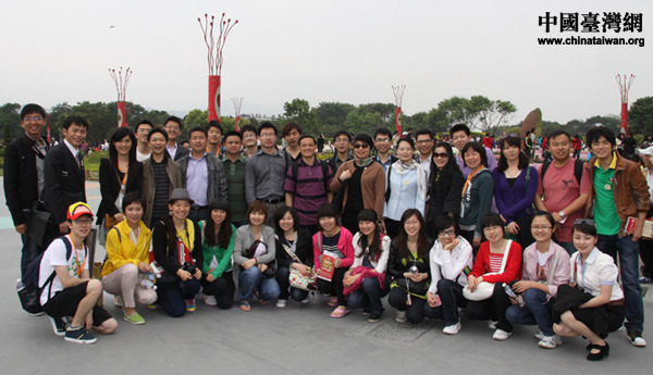 2011年4月11日,40余名大陸高校師生參觀臺北花博會,在園區內合影留念。(中國臺灣網 楊永青 攝)