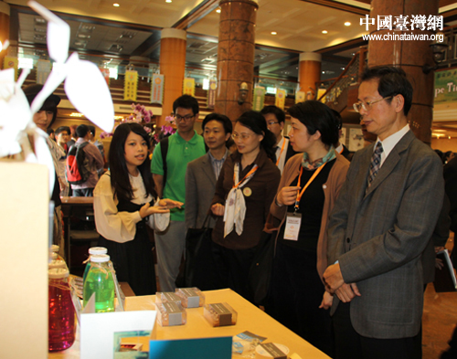 2011年4月13日,大陸高校師生參訪彰化建國科技大學,圖為參觀商業設計系畢業展。(中國臺灣網 楊永青 攝)