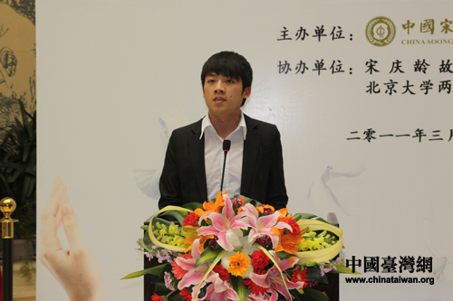 中國地質(zhì)大學(xué)學(xué)生周舟在啟動儀式上發(fā)言。(中國臺灣網(wǎng) 王思羽 攝)