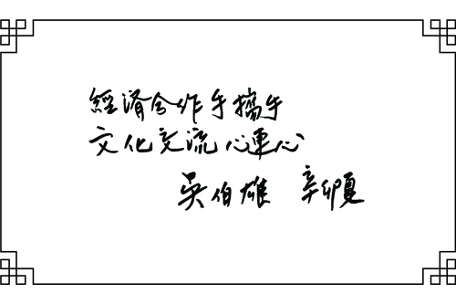 中國國民黨榮譽主席吳伯雄: 經(jīng)濟合作手?jǐn)y手,文化交流心連心。(圖文由中國宋慶齡基金會聯(lián)絡(luò)部提供)