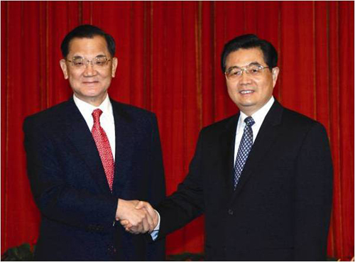 2005年4月29日,胡錦濤與連戰(zhàn)握手,實現(xiàn)了兩黨主要領(lǐng)導(dǎo)人歷史性的會見,標(biāo)志著兩黨的交往進(jìn)入了新的發(fā)展階段。
