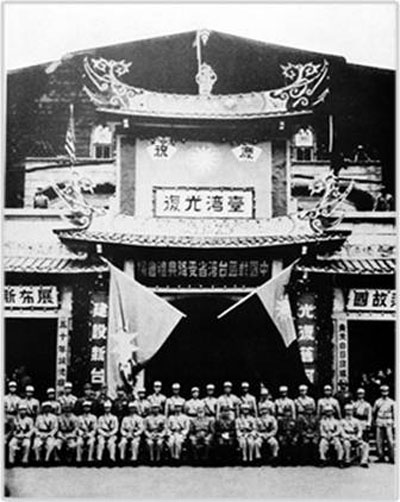 1945年10月25日,中國(guó)戰(zhàn)區(qū)臺(tái)灣省受降儀式在臺(tái)北中山堂舉行。