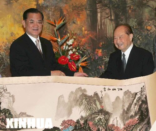 2005年5月2日,海峽兩岸關系協會會長汪道涵在上海會見中國國民黨主席連戰。新華社發