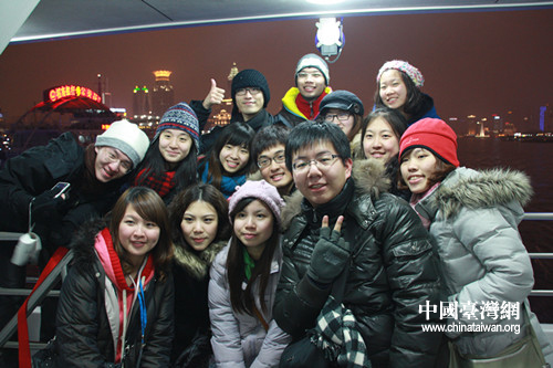 臺(tái)灣學(xué)生和大陸高校志愿者在黃浦江游輪上合影。(中國(guó)臺(tái)灣網(wǎng) 栗琰 攝)