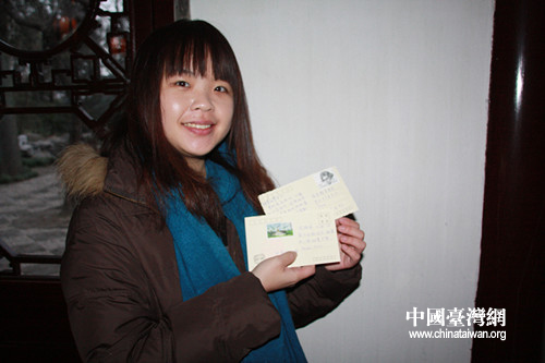 臺灣成功大學學生楊雅嵐寄給臺灣朋友的明信片。(中國臺灣網(wǎng) 栗琰 攝)