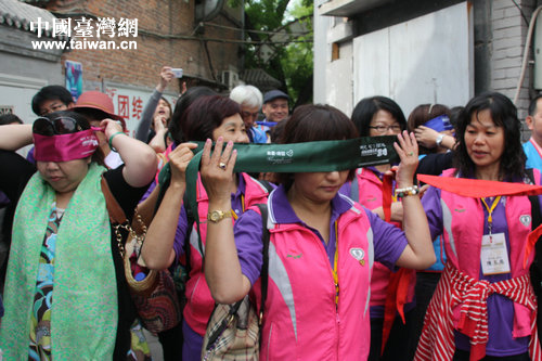 臺(tái)灣參訪團(tuán)成員蒙上眼睛準(zhǔn)備開始體驗(yàn)。(中國(guó)臺(tái)灣網(wǎng) 郭瑩瑩 攝)