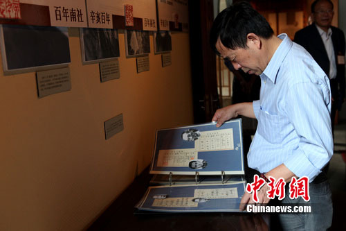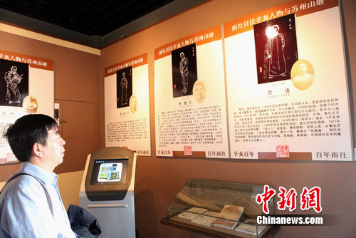 中新網蘇州10月8日電(李克祥)8日,《南社百位辛亥人物與蘇州·山塘》紀念展在中國南社紀念館開幕。這是國內外首次舉辦的“辛亥革命與南社”展覽,通過展出大批南社人物的遺物、生平事跡等,翔實的展現出南社人物發起了“辛亥先聲”,是“辛亥革命”取得成功不可或缺的一支力量。