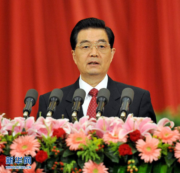 10月9日,紀(jì)念辛亥革命100周年大會(huì)在北京人民大會(huì)堂隆重舉行。中共中央總書記、國(guó)家主席、中央軍委主席胡錦濤在大會(huì)上發(fā)表重要講話。新華社發(fā)