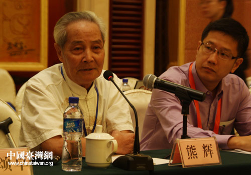 打響武昌第一槍的熊秉坤之子熊輝先生代表辛亥后裔在座談會上作了慷慨激昂的發(fā)言。(中國臺灣網(wǎng) 李丹 攝)