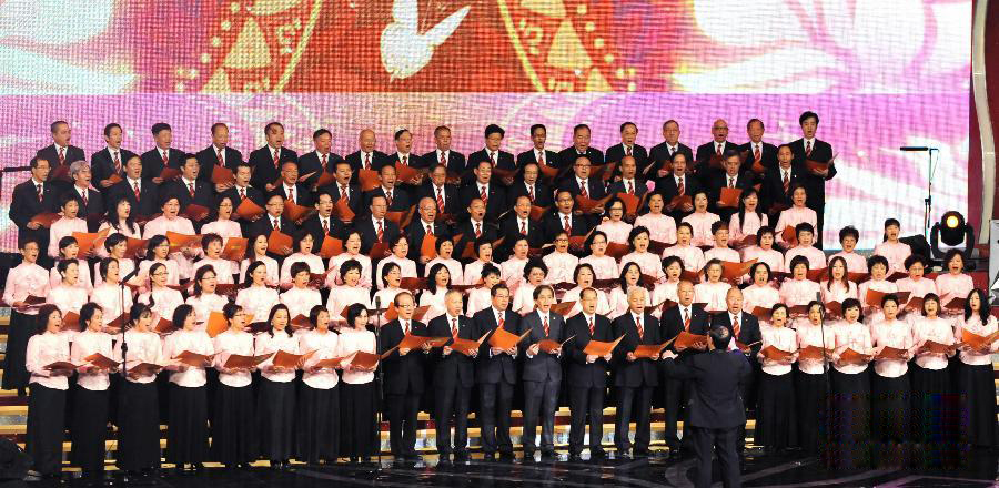 8月13日,中華總商會合唱團在文藝匯演上演出“走向復興”