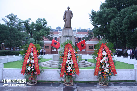 8日上午,以黃埔同學會會長林上元為代表的黃埔同學,及海內外黃埔組織代表、黃埔后裔及親友等20余人,在辛亥革命武昌起義紀念館拜謁孫中山先生銅像,并敬獻了花籃。(中國臺灣網 李丹 攝)