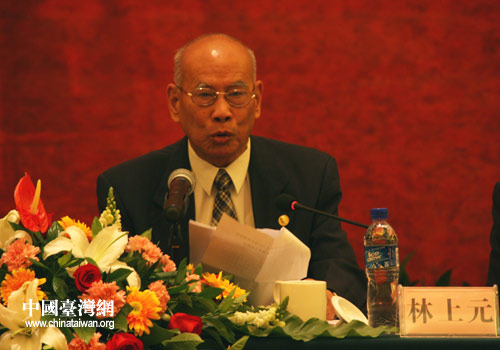 黃埔軍校同學會會長林上元在座談會上發(fā)言。(中國臺灣網 李丹 攝)