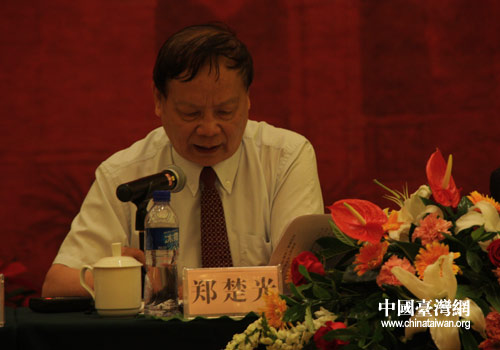 湖北省政協(xié)副主席鄭楚光在座談會上發(fā)言。(中國臺灣網 李丹 攝)