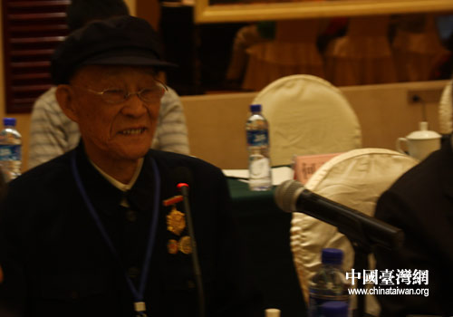 94歲的黃埔軍校第17期預科學員劉一曙在座談會上發(fā)言。(中國臺灣網 李丹 攝)