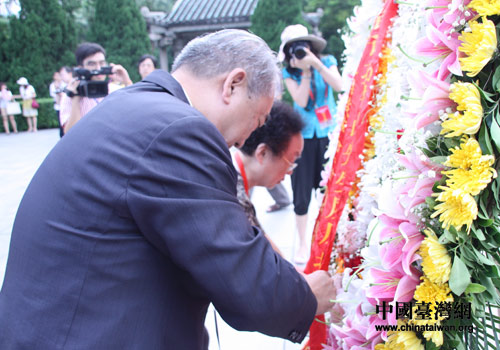9月9日下午,出席黃埔論壇的兩岸嘉賓代表在黃花崗七十二烈士陵園一同向烈士們敬獻了花圈,并拜謁致意。(中國臺灣網 李丹 攝)