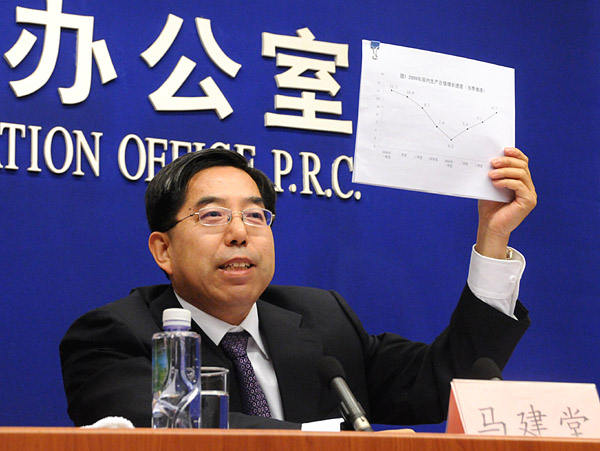 國家統(tǒng)計局局長馬建堂在國務院新聞辦公室舉行的新聞發(fā)布會上說,面對百年不遇的國際金融危機的嚴重沖擊和極其復雜的國內外形勢,中共中央、國務院審時度勢,科學決策,帶領全國人民萬眾一心,共克時艱,堅持實行積極的財政政策和適度寬松的貨幣政策,全面實施并不斷完善應對國際金融危機的一攬子計劃,較快扭轉了經濟增速明顯下滑的局面,實現(xiàn)了國民經濟總體回升向好。